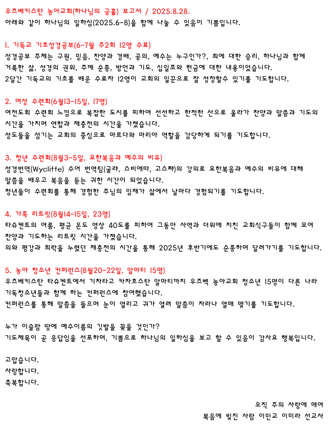 캄보디아 김득수, 이옥란 선교사 기도편지